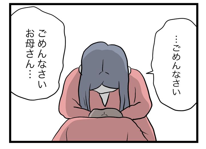 母に非難され、「ごめんなさい」と謝るペキ子。そして、「やるって決めたならやり遂げなさい」と母は言います。