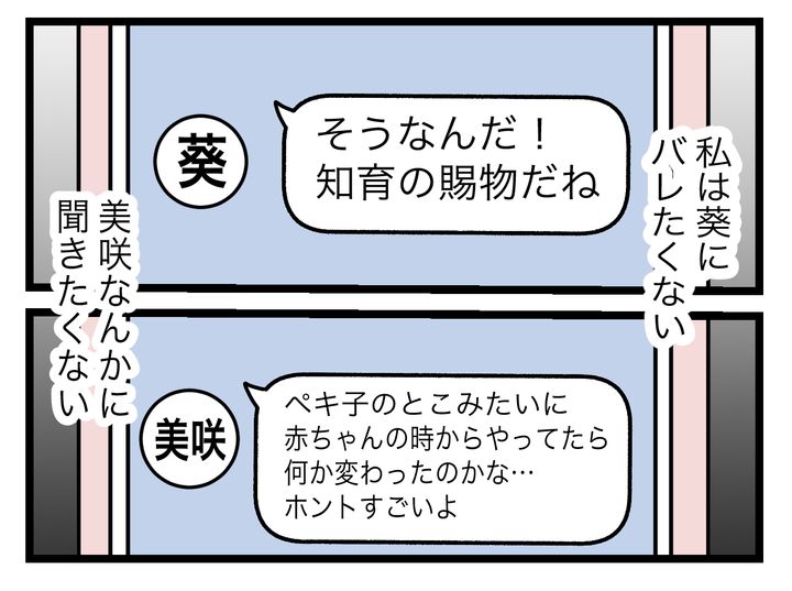 本当のことを言えず、「うちの子は今のところ完璧だって」と美咲と葵に言ってしまうのでした。