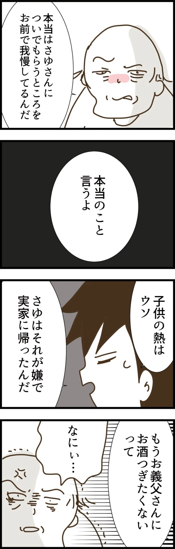 そんな時代錯誤の義父に、夫は「妻はそんな義父が嫌で嘘をついて実家に帰った」と本当のことを伝えてしまうのでした。