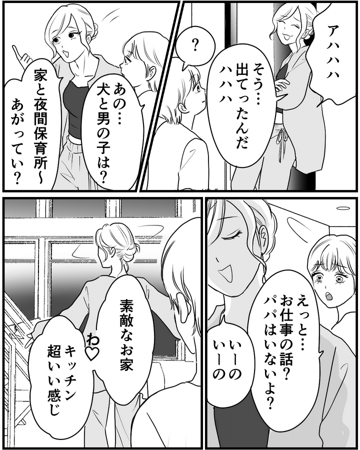 一方、夫の家では相手女性が突然訪問して上がり込んでしまったそうで…。すぐに夫が外に連れ出したようですが、息子が夫と相手女性が話しているところに出くわしてしまったのです。