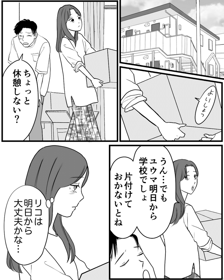 私と息子は元の自宅から少し離れた場所に部屋を借りました。娘と一緒に暮らせないのは残念ですが…。娘は自分が父親と一緒にいることで、また家族全員が暮らせるようになる、と考えたようです。