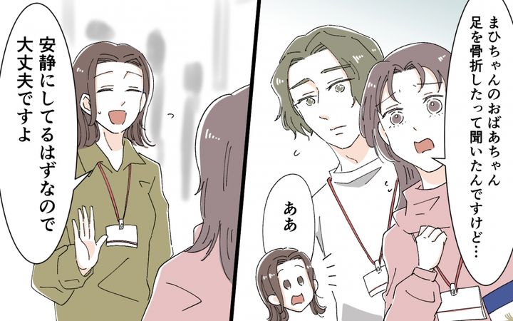派手な服装と自由すぎる行動で家族を振り回す義母。幼稚園の遠足で子どもをかばって骨折し、入院することになってしまう。夫は義母に対して冷淡な態度を崩さず、仕方なく妻がひとりでお世話をすることに。夫の無関心さにイライラしていた妻は退院時にもワガママを繰り返す義母を負担に感じてしまい…。