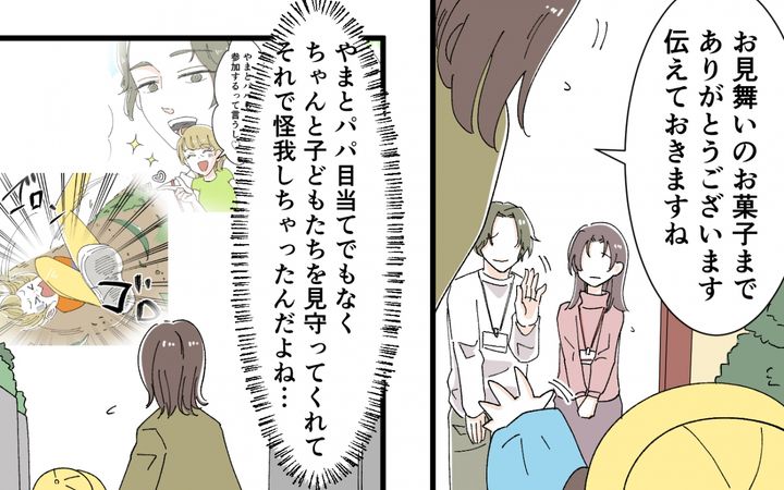 男の子のママさんとは別に幼稚園からも謝罪を受け、治療費のお話もありましたが、義母がいらないと突っぱねるので、私から丁重にお断りしました。