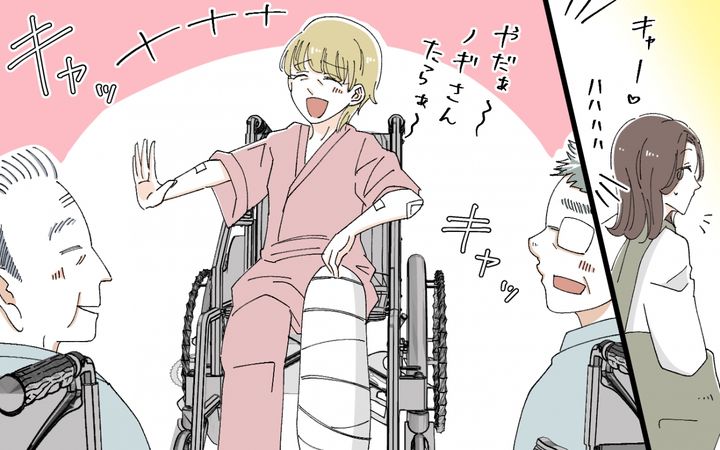 遠足の後、ぐずる娘を連れて義母の家に寄った私。入院グッズを持って病院に行くと、義母は笑顔で迎えてくれたので安心しました。他の患者さんたちと楽しそうに交流していて…元気そうで何よりです。