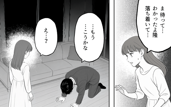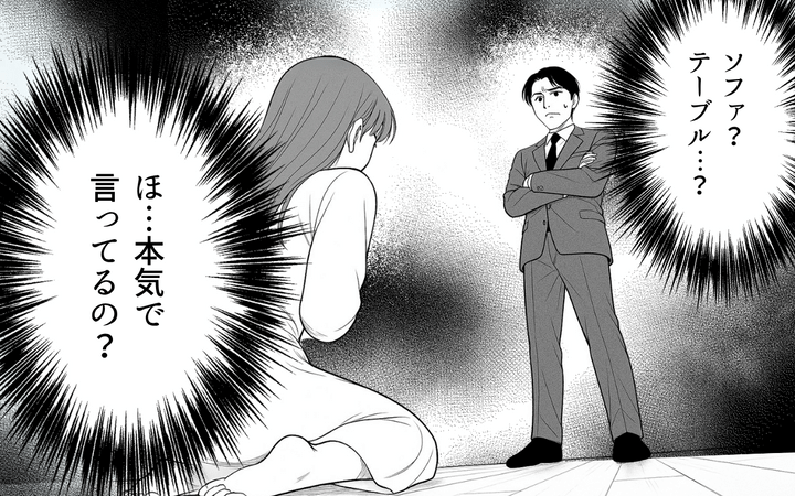 「整った空間で暮らしたい」というこだわりの強い夫。子どもが大きくなるまでの我慢だと自分に言い聞かせるが、それも我慢の限界。「心の健康のためにもう少しキレイに暮らしてほしい」と妻に訴える。それを聞いて妻なりに努力しようとするが、我慢をやめた夫のこだわりはさらにエスカレートしていく。生後間もない息子よりも自分のこだわりを優先させようとする夫に妻は…。