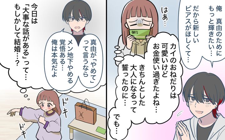 じつは…離婚したときのショックでハマってしまったメン地下アイドルのカイくん。そんなカイと息子を元夫に渡したあとで偶然連絡先を交換できてしまい…。息子がいない寂しさや将来の不安からカイとの未来を夢見てしまいました。