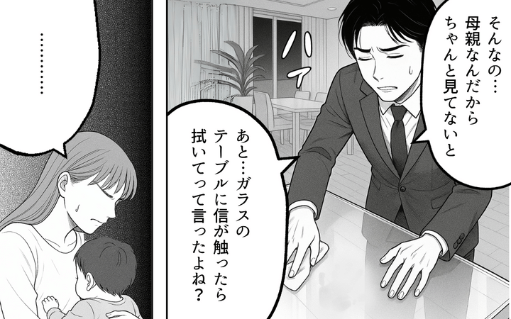 「整った空間で暮らしたい」と言う美意識の高い夫。こだわりが強く、妻の意見を聞こうとしない夫に妻は不安を抱くが、子どもが生まれてからは率先して散らかった部屋を片付けてくれるなど、変わったかに見えた。しかし、夫は無理を重ねていただけだった。子どもが大きくなるまでの数年の我慢だと自分に言い聞かせてきた夫だったが、ついに「耐えられない」と妻に訴えて…。