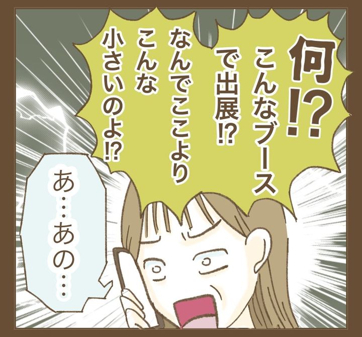 マキちゃんが比較した相手は大手の企業。ブースのサイズに違いがあるのは当たり前のような気がしますが…。世界は自分を中心に回っているかのようなふるまいです。