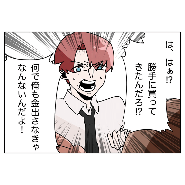 勝手に買ってきたものに対し、「なんで俺が払わなきゃいけないんだ!」と怒鳴る夫に、母は夫が妻に放った同じ言葉で返します。