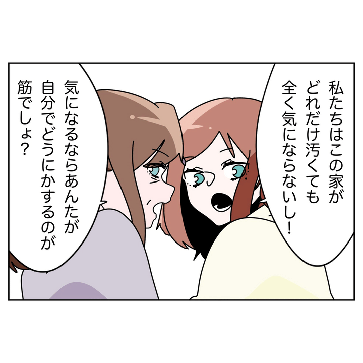 すると2人は平然と、「私たちはどんなに汚くても気にならない。気になるなら自分で片付けたら?」と返します。そう、それはまさに、かつて夫が妻に言い放った言葉。