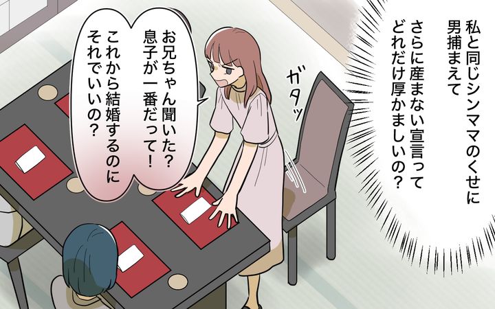 しかもシンママなのに、初婚の男性をつかまえて、子どもを作らない宣言までするなんて、どこまで兄をコケにすれば気が済むのでしょう。大事なお兄ちゃんの相手がこんな女性だったことに私はとてもショックでした。