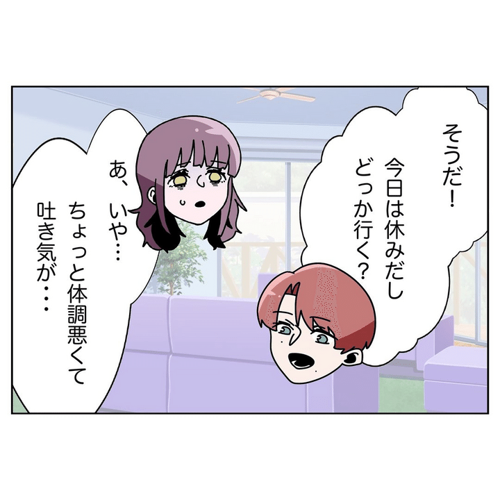 その後、夫はまるで何事もなかったかのように「休みだし、どこか出かけようか?」と誘ってきました。でも妻は、つわりがひどくてとても外出できる状態ではないと伝えます。