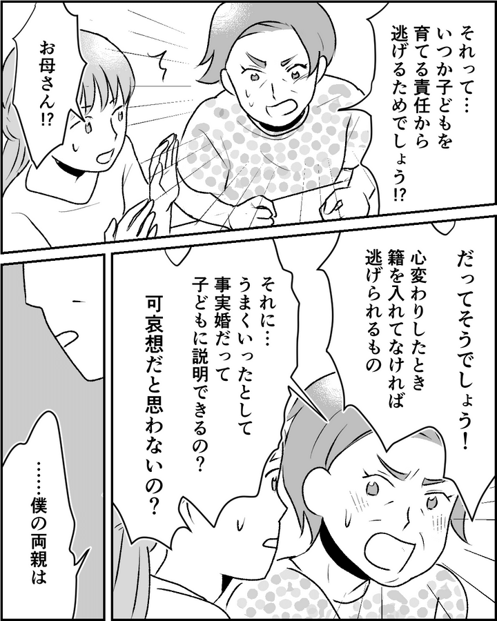 そんなふたりの真摯な説明に、両親の表情は少しずつやわらいでいき…。最終的に事実婚を認めてくれたのでした。