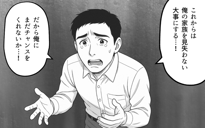 「これからは俺の家族を見失わない」と夫は涙ながらに謝っていました。チャンスをほしいと言う夫に、私が出した答えは…。