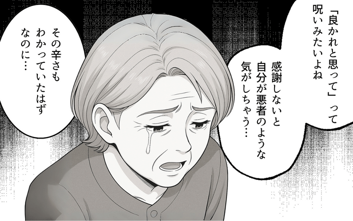 自分もお姑さんの善意の苦しんだはずなのに、同じことをしてしまったと…涙ながらに謝ってくれました。