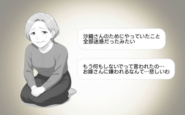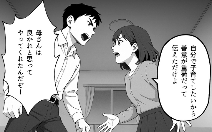 【これまでのあらすじ】義母の善意が重荷になっていることを伝えた妻。しかし、義母は「迷惑ってことかしら」と怖い顔になる。ここで折れたら何も変わらないと心を決めた妻に、義母は「そんな薄情な人だと思わなかった」と声を荒げ…。