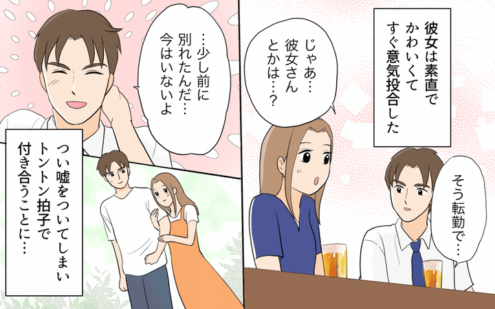 どうせ転勤中だけの遊びなんだから、「独身」って言っておけばいい。ところが、彼女も一緒にこちらへ出てくると言い出して…。