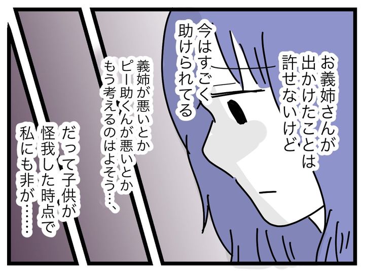 一方、家では甥っ子と娘が衝突してケガをしてしまう。最初は自分を責める妻だったが、すべての責任を押し付けてくる義姉の悪態に「全部義姉が悪いよね?」と思い直して…。