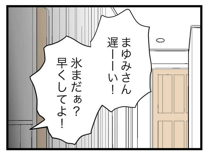 一方、家ではゲーム機の取り合いをする甥っ子たち。妻が注意すると、1人と娘が衝突し、娘がギャン泣き。そのとき義姉が帰宅し、甥っ子もケガをしていたことが判明。事情を説明するも、義姉は「他責思考」と非難し、妻に嫌がらせをする目的で「氷とガーゼ早く持ってこいよ」と暴言を吐いたのだった。