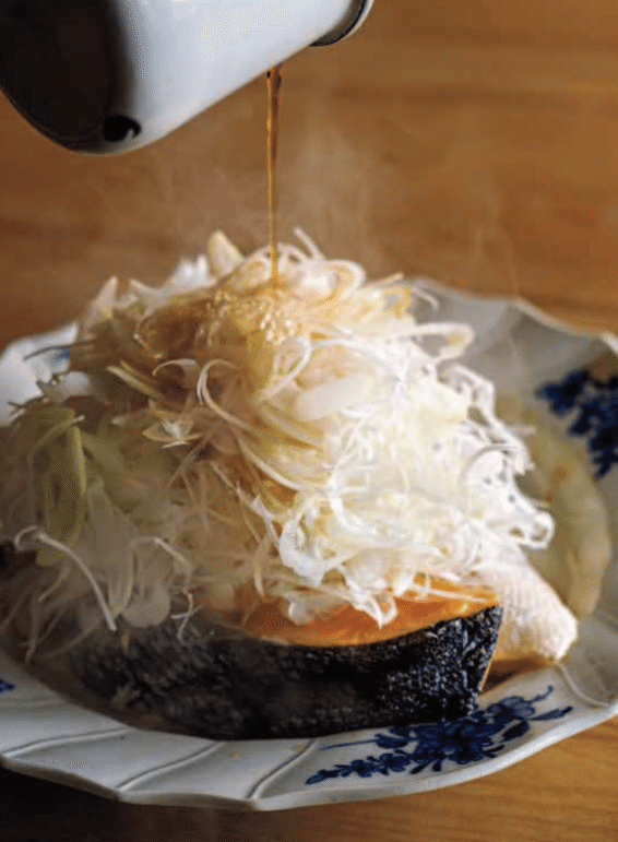 ねぎたっぷりのせ蒸し魚