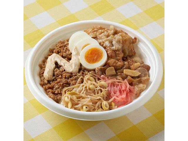 ファミリーマート ニンニク背脂が決め手のから揚げ&豚焼肉月見丼