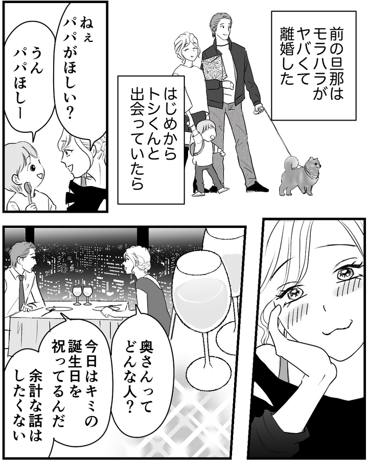 彼・トシくんと出会ったのは私が働くお店。ひとりの女性として向き合ってくれている気がして…一気に惹かれていきました。でもなかなか奥さんと別れてくれません。