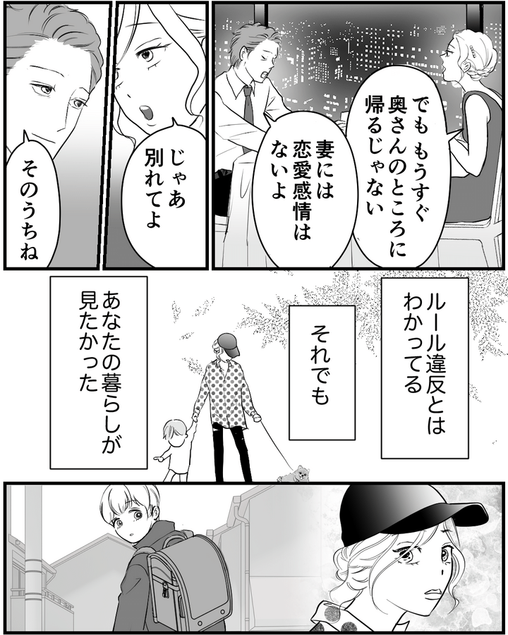 相手女性のマホと直接対決した妻。お互いのプライドがぶつかり合い、言い合いになってしまう。妻は夫を問い詰めるが「すでに別れた」とのこと。そして、夫から「今でも俺のこと好きか?」の質問に答えられなかった…。