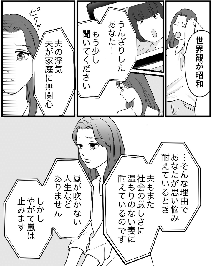 妻は、相手女性が娘に接触したことを夫に伝えた。しかし夫は動揺するも、関係を切るとは言わなかった。そればかりか責める妻を「専業主婦にはわからない」「無駄遣いするな」と突き放し…。
