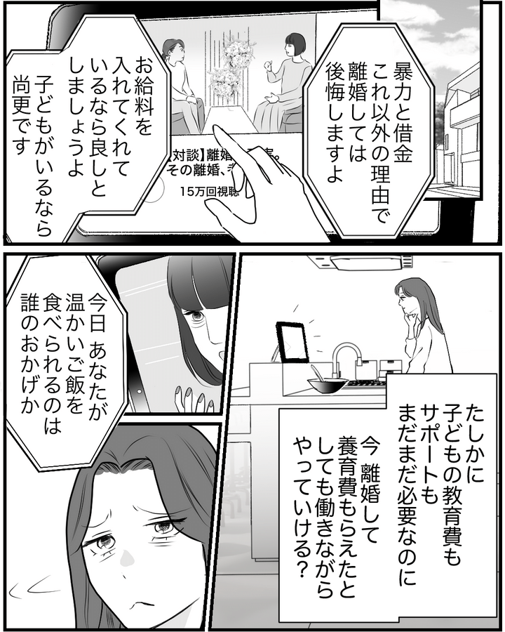 夫との離婚が頭をよぎるものの、ネックはやはり私に収入がないこと…。動画配信者はこちらの都合もお構いないしに「やがて嵐は止む」と言っています。