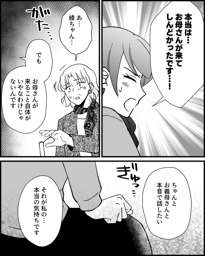 義母の訪問は「しんどかった」だけではありませんでした。だからこそ、いま本音で話さないといけない、と思ったのです。もちろん夫にも私の気持ちをちゃんと理解してほしかった…。