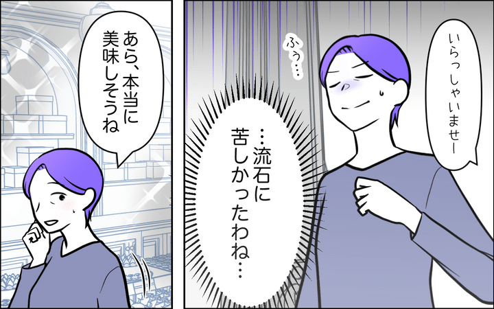 こっそりお教室を見に行ったのに、鉢合わせしたのには驚きました…。この前失礼なことを言ってしまったし、気まずい関係でいるのも嫌なので、私はお菓子を買って嫁の帰りを待つことにしました。