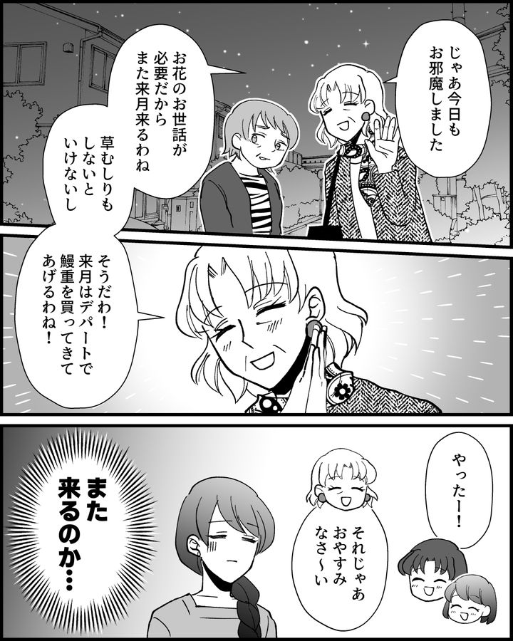 勝手に庭をいじられ収納を開けられて…新居が義母の好みに染められていく<とにかく家に来たがる義母 7話>【非常識な人たち まんが】