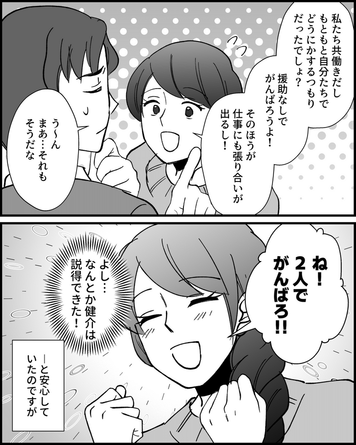 お金を出されると口も出されてしまうので、私はなんとか理由をつけて夫を説得し、義母からの援助は断りました。