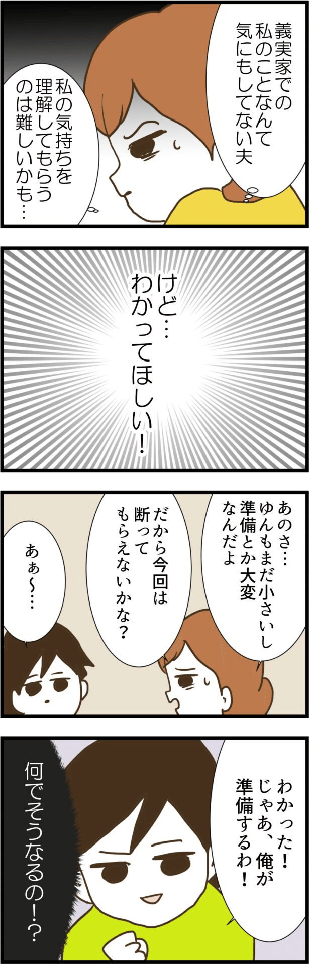 義実家でまともにご馳走になったことがない妻の気持ちが夫にわかるはずもありませんが、それでも諦めたくない…!