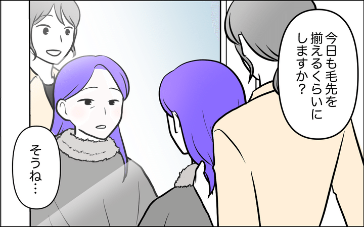 そんな時に未沙さんが夫にやんわり反論してくれたのです。なんだかちょっとだけ、スッキリした私。それ以来、嫁に対する印象が少し変わりました。そして美容院に行った時…未沙さんの言葉を思い出してしまって…。