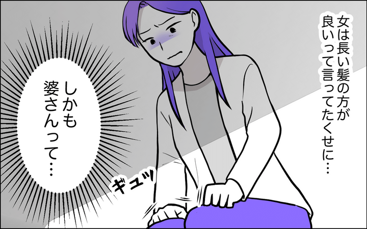 前からずっと「女は長い髪の方がいい」と言っていたくせに。しかも「婆さん」なんて言われたら…やっぱり傷つくし、悲しくなります。