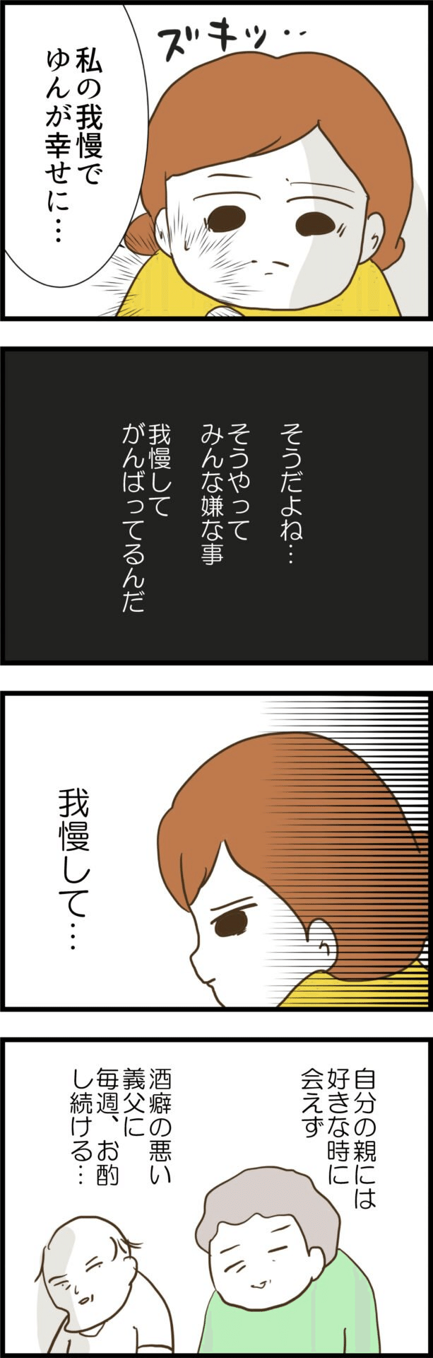 義実家では毎週嫌な思いをして、実家に好きなときに帰ることすらできない環境を我慢して、それが本当に幸せと言えるのか…?とも。