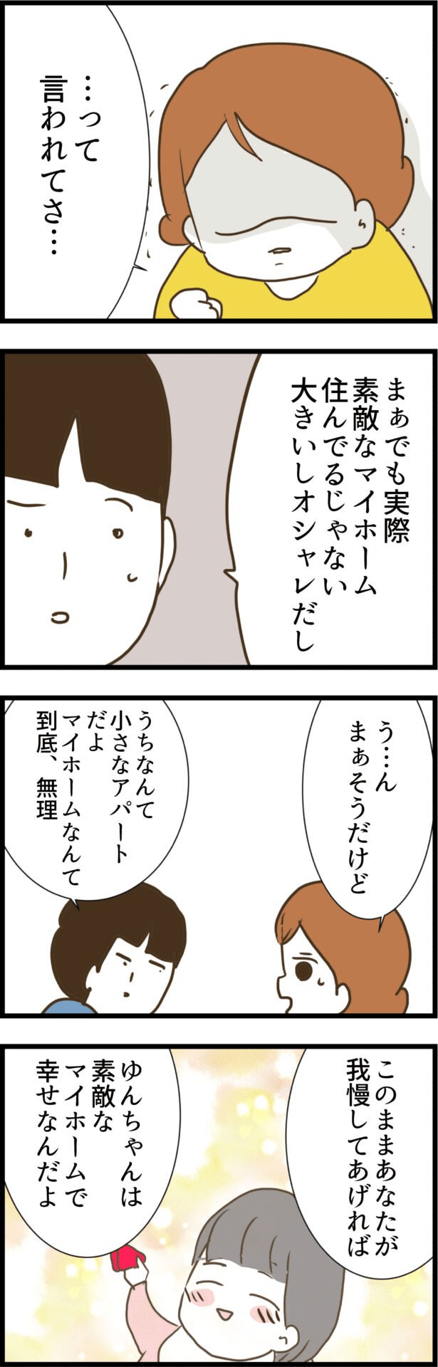 その話を聞いていたママ友は、実際素敵なマイホームに住めているのだからそれも一理あるとのこと。