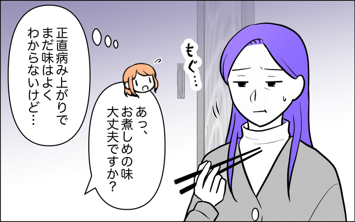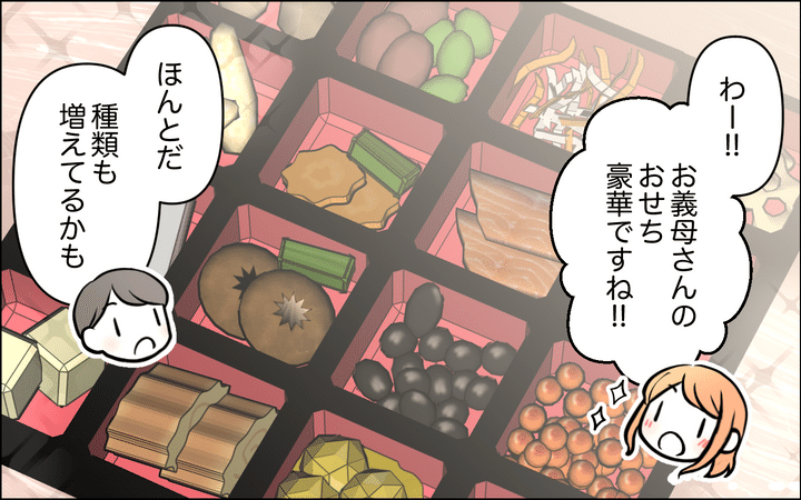 おせちを食べた夫や息子の反応に多少の負い目は感じましたが…。自分のプライドを保てたことにホッとしました。さて次は、嫁が作ってきたお煮しめを食べる番。でも、まだ味がよくわからなくて…。