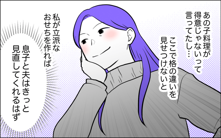 息子夫婦が結婚して初めてのお正月。未沙さんがおせちの準備を手伝えないと言うので、モヤっとしましたが…これはチャンスだと思い直した私。ここで立派なおせちを作れば夫も息子も私を見直し、感謝してくれるでしょう。