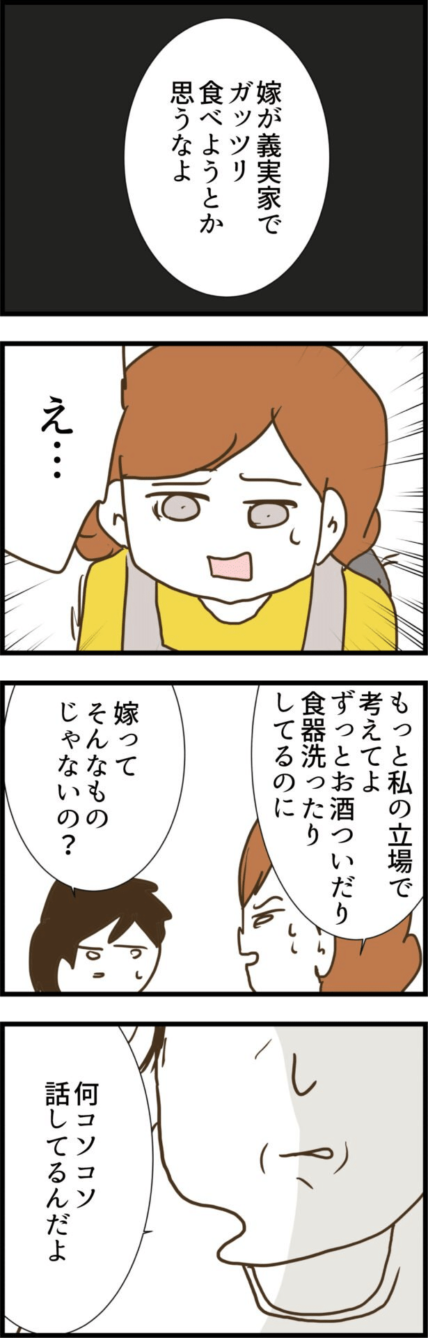 別に義実家でお腹いっぱい食べようなんて思っているわけではなく、ただただ母がせっかく送ってくれたお肉だから食べたかったと言っているのにまったく話が通じない夫。