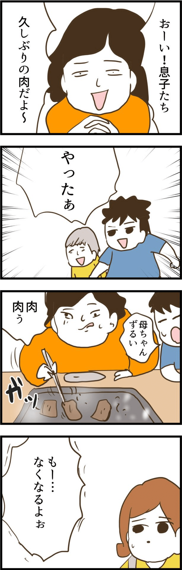 妻は義実家で焼肉をしたときに、お肉を食べられたことがほぼありません。こうなることが分かっていたからこそ、母から送ってもらったこのお肉は家族だけで食べたかった…。