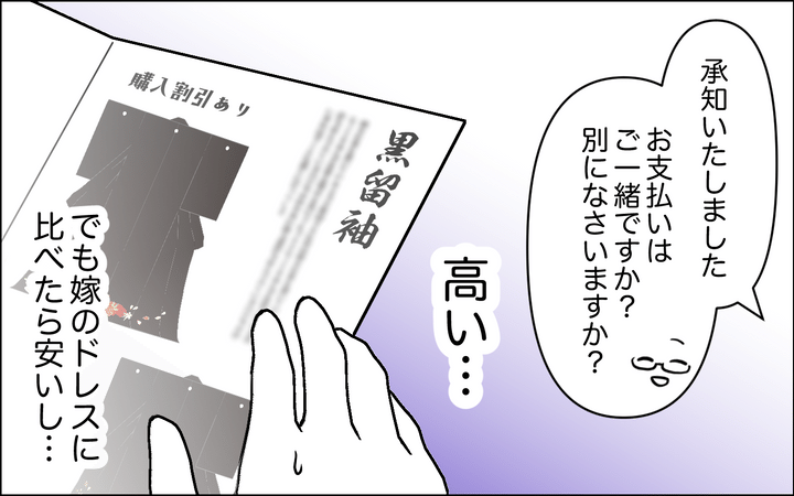 たまには私に買ってよ! 息子の結婚式準備にモヤモヤする…<うちの嫁には負けたくない! 4話>【義父母がシンドイんです! まんが】