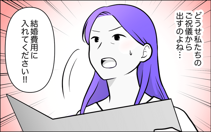 お金はどうせ私たちのご祝儀から出すんです。なので結婚式の費用に入れてもらったのですが…。