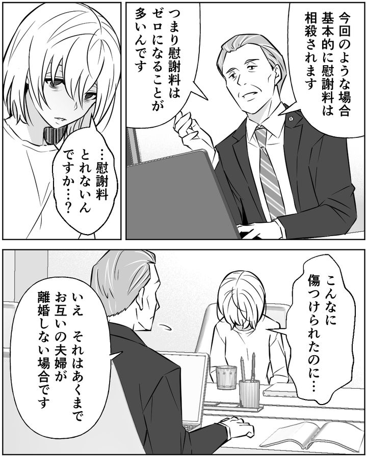 弁護士から、どちらも家族を裏切っていたため慰謝料は相殺される、と言われ絶望しました。こんなに傷つけられたのに、お金をとれないなんて!