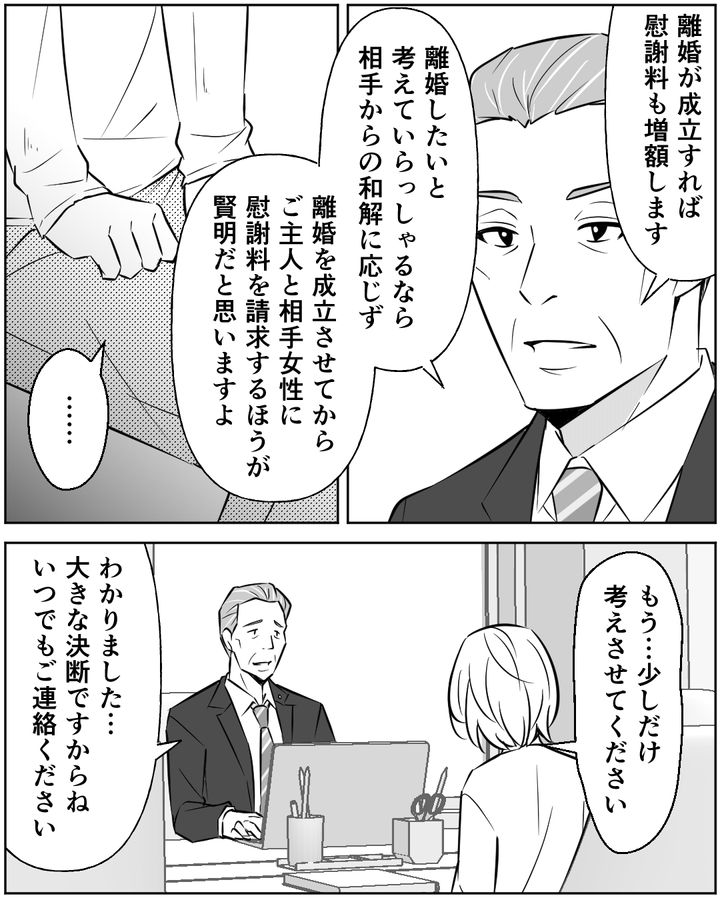 しかし離婚すれば、トモキと相手女性・ナオコの両方に慰謝料を請求できると知り、私は離婚することを決めました。