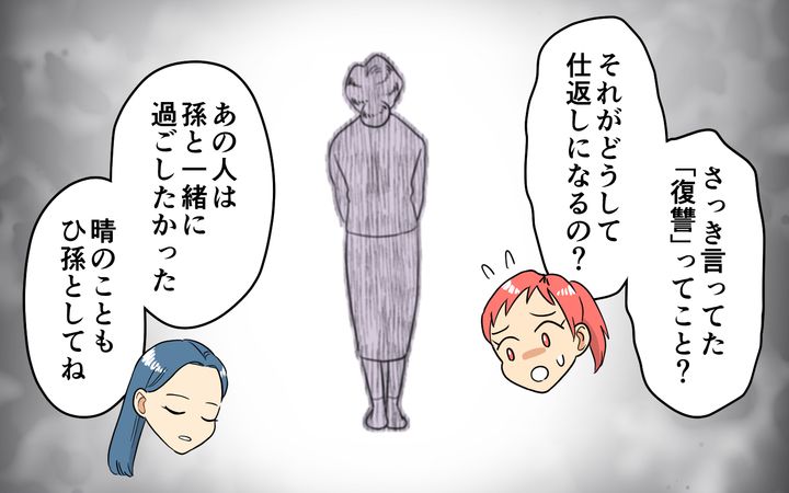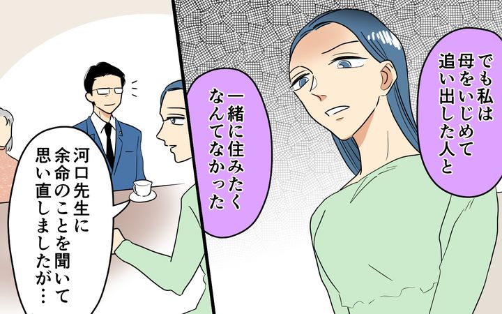 お屋敷の先代であり瞳さんの祖母は、長年ひとりで暮らしてきて、最期の時を孫とひ孫に囲まれて暮らせることを本当に嬉しく思っていたのではないかと思います。でも瞳さんからしたら、母親を苦しめた張本人。複雑な感情の中、この屋敷に住むことを了承したのでしょう。