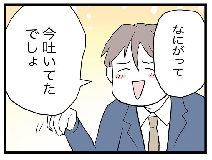 つわりが来れば、ペキ子が信じているブロガーたちの言葉に振り回されることなく、努力でどうにもならないということに気づくと思っていた優一。つわりが来たと確信し、ホッとします。