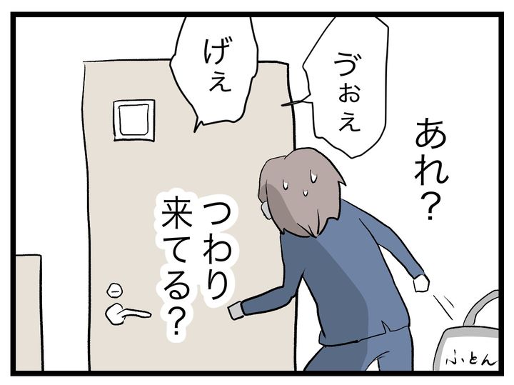 帰宅すると、トイレからペキ子の声が…。この声ってもしかして…、つわりが来てるんじゃないですか…!?