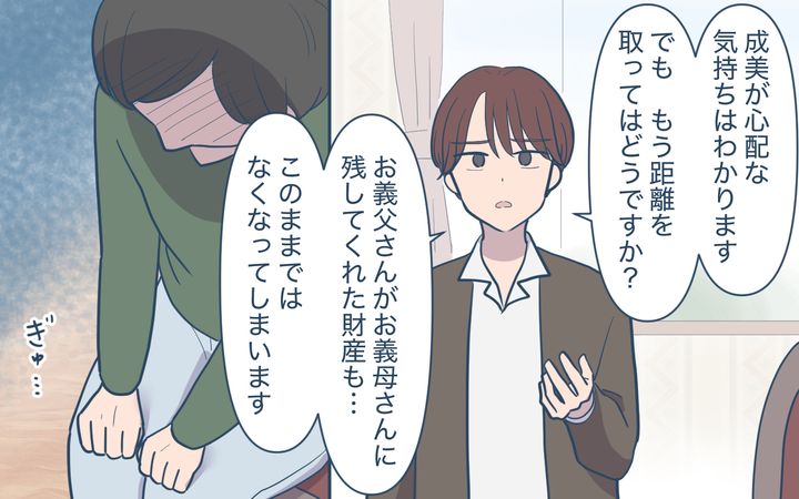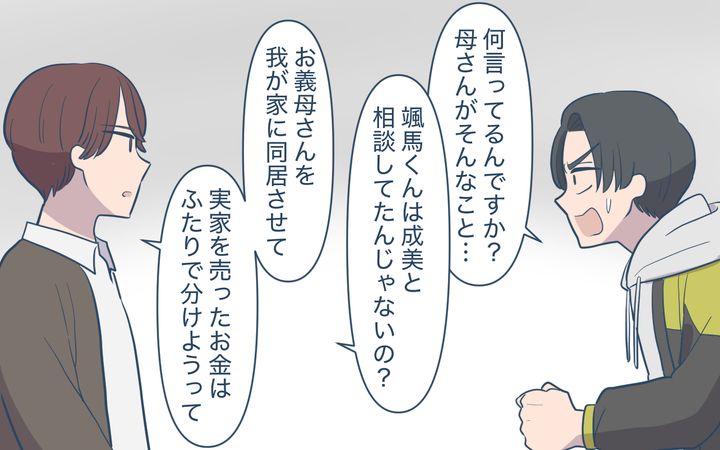 あの日、颯馬くんにも来てもらったわけは、実家の売却相談のためでした。成美が頑なに義母を施設に入れることを拒否していたのは、義母に勝手に実家を売却して施設に入られてしまったら、相続する金額が減るからでした。さらには、実家売却して自分に資金が入るよう手筈を整えたかったのかもしれません。